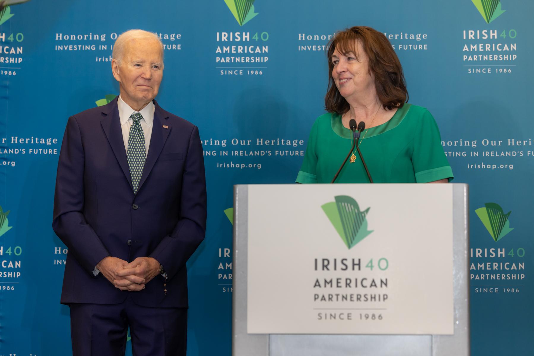 Introduced by United States Ambassador to Ireland, Claire D. Cronin (Ret.), President Biden spoke movingly of heritage, identity, and shared values, reminding us all of the strength of the Irish-American story and the importance of continuing to invest in future generations.